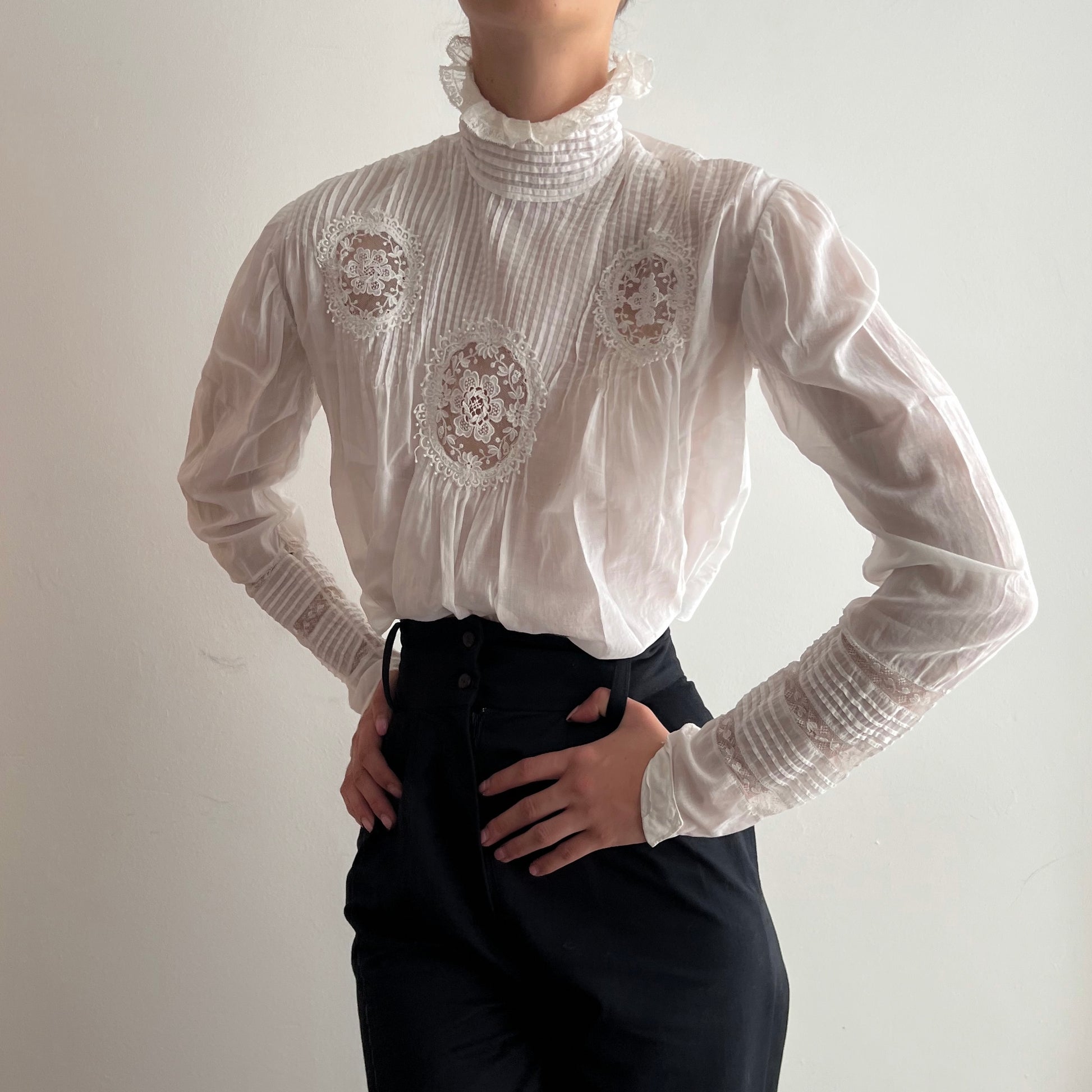 INSANE victorian blouse with buttons and incredible embroidery throughout. This piece is from circa 1900-1910 and has been completely deep cleaned and restored. Very rare! SHEER
