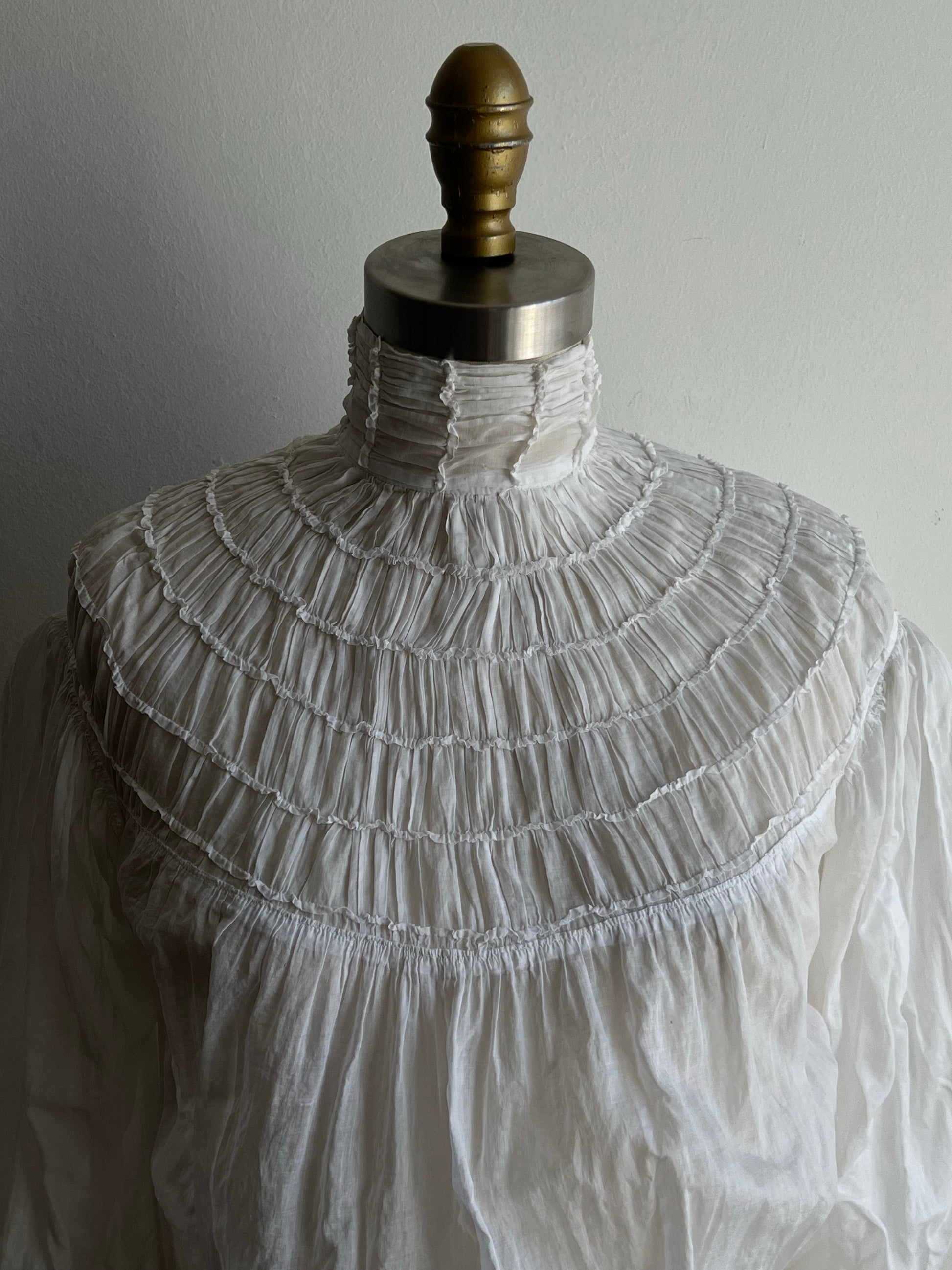 INSANE Edwardian blouse with buttons and incredible pleating throughout. This piece is from circa 1900-1910 and has been completely deep cleaned and restored. Very rare! SHEER
