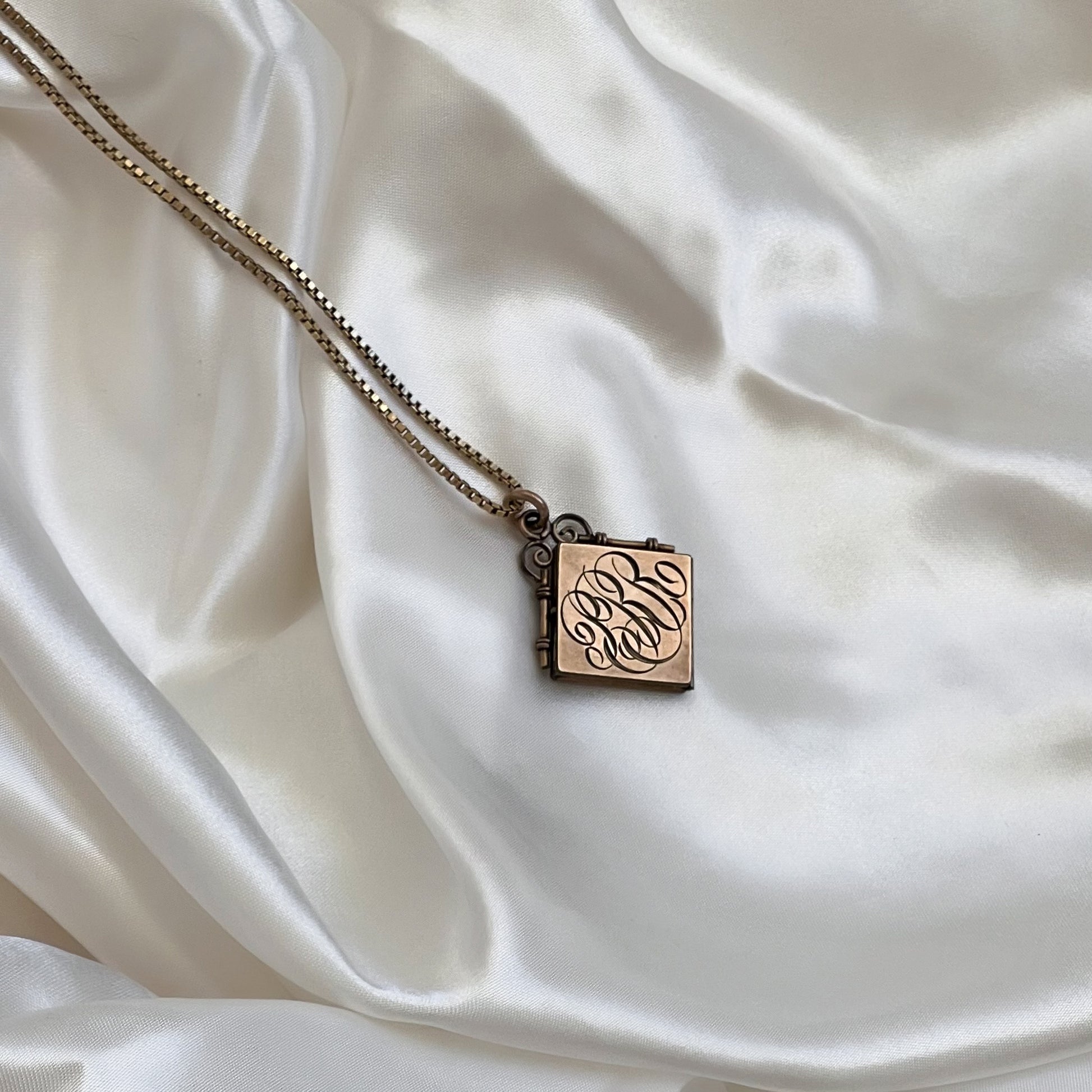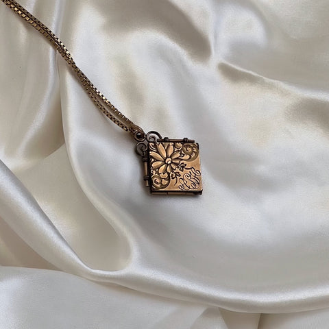 GORGEOUS antique victorian locket with initials on one side and a floral design on the other. Antique chain included.