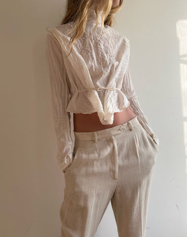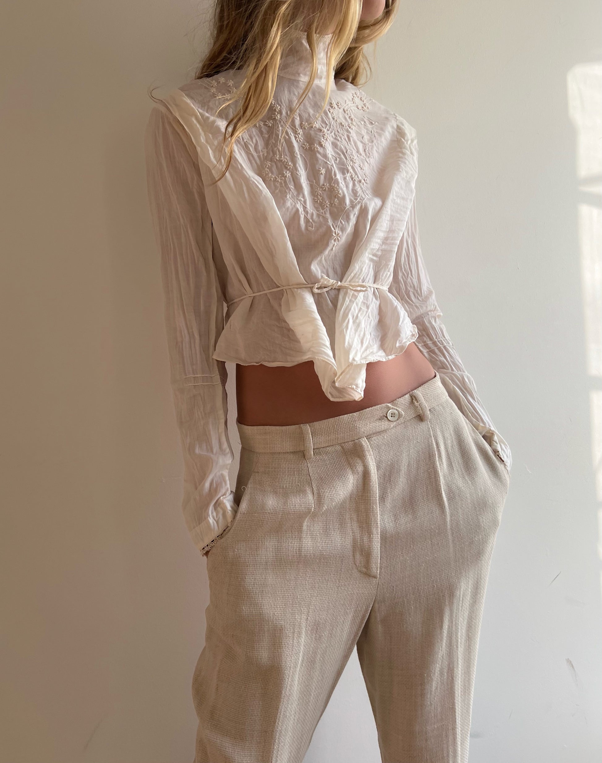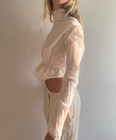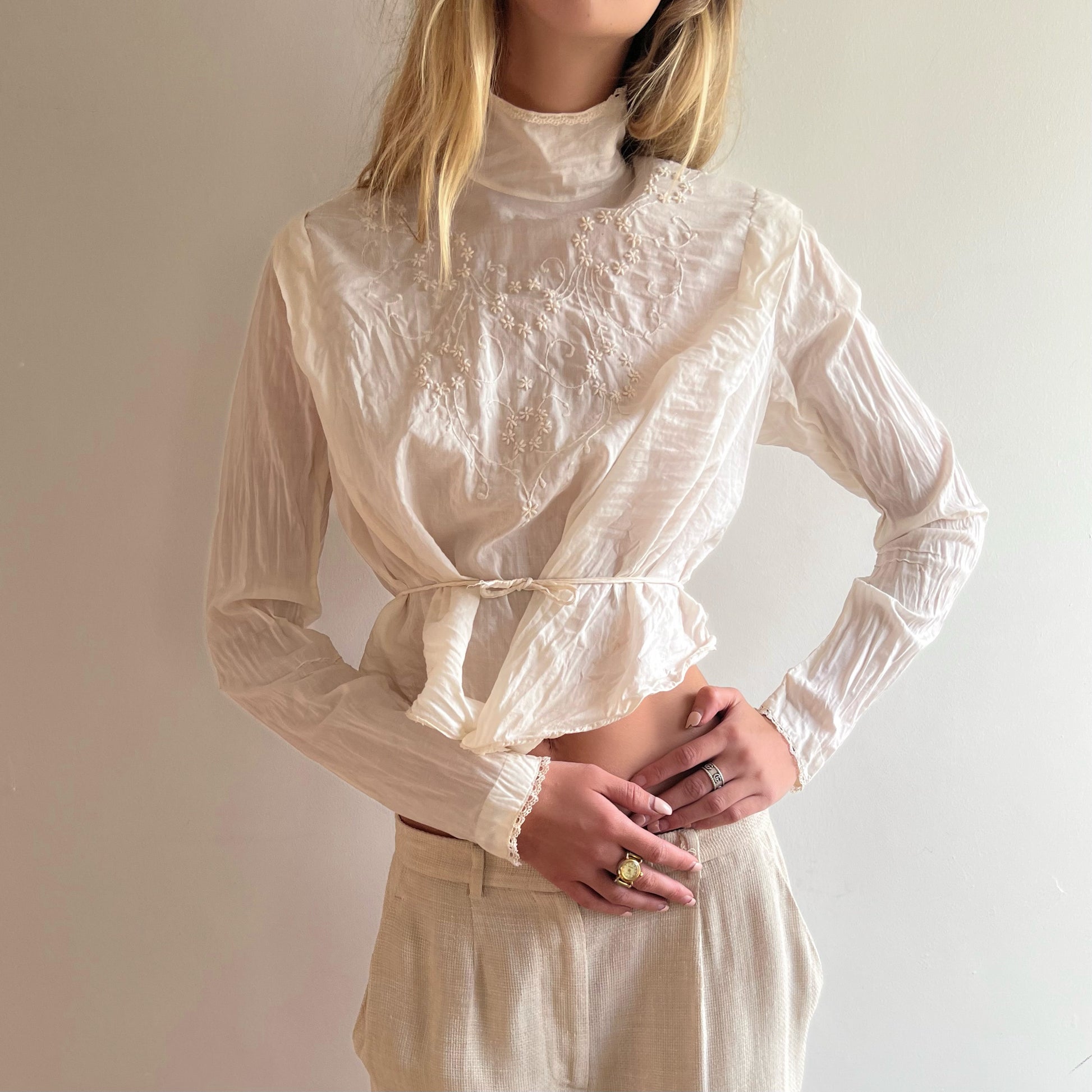 INSANE edwardian cotton blouse with the most beautiful detailing throughout. High collar and with long sleeves . This piece is from circa 1910 and has been completely deep cleaned and restored. Very rare!