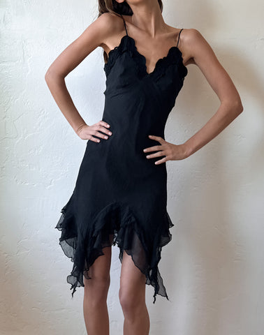 Absolutely stunning pure silk fairy dress. Has a ruffle hem and scalloped neckline. Sourced in Paris